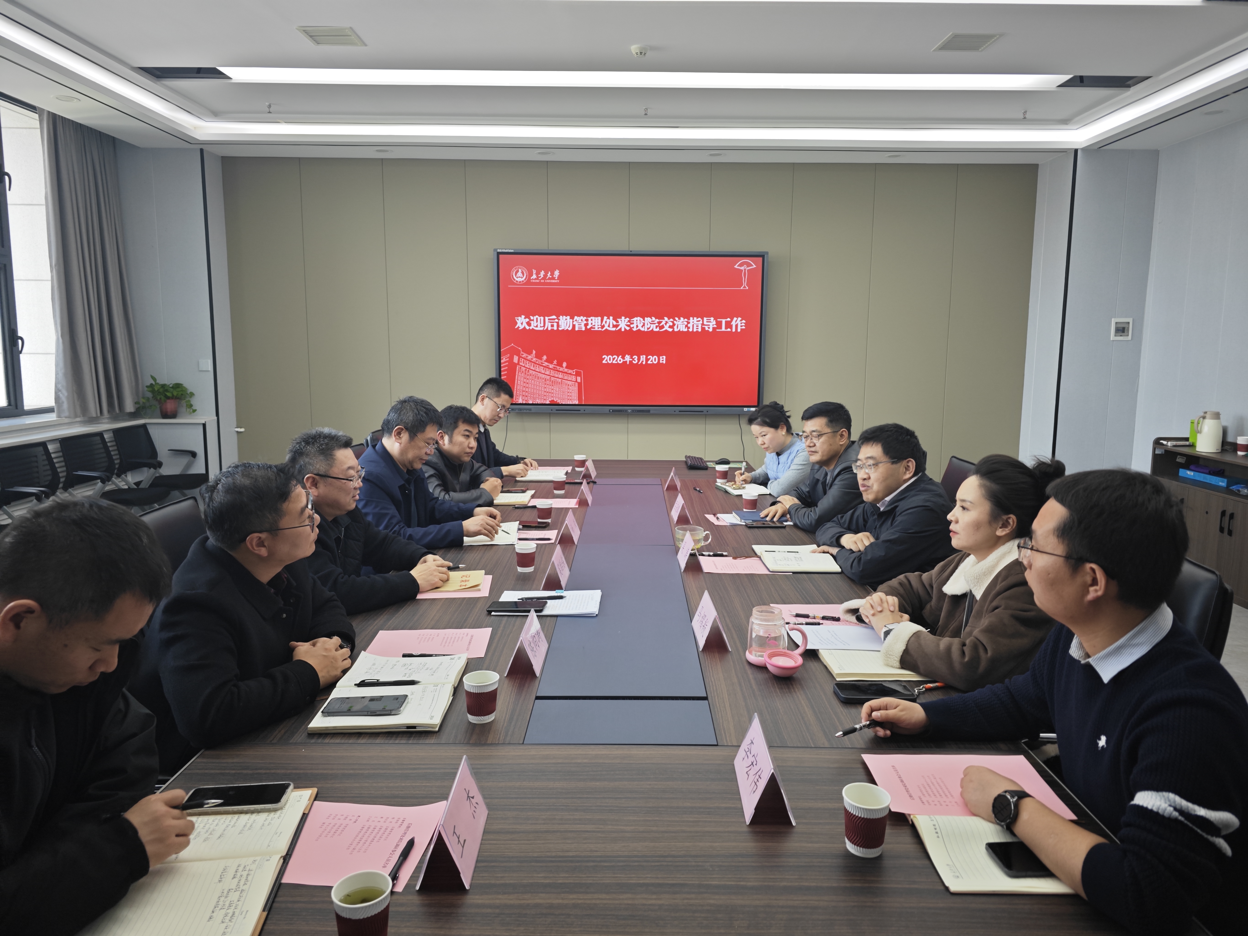 为进一步提升后勤服务保障水平,深入了解无码av 实际需求,3月20日下午,后勤管理处处长侯贻栋一行来我院开展专题调研。我院党委书记吴涛、党委副书记副院长孟庆鹏和党委副书记马熠航出席调研座谈会。