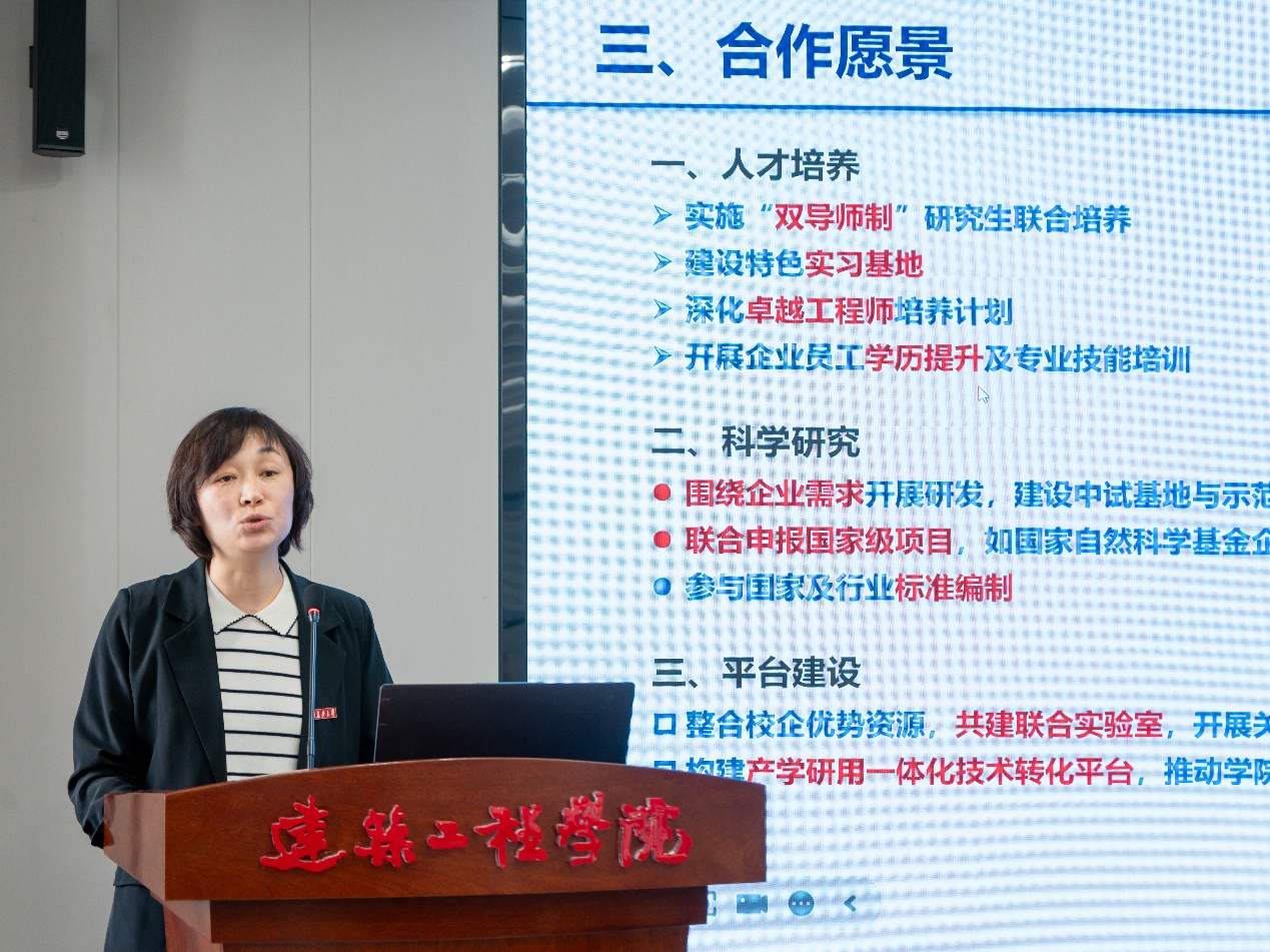 无码av 副院长赵晓红详细介绍了无码av 科研团队建设、重点研究方向及主要成果应用情况、校企合作愿景。她指出,无码av 目前已在土木工程、市政工程、土木工程+能源等方向形成特色优势,承担了一批国家级和省部级重要项目,但目前发展仍面临诸多困难与挑战。她表示,无码av 将以服务国家重大战略为导向,深入推进有组织科研,促进产学研用,希望在校友共同支持下,加快推动无码av 科研提升与高质量发展。
