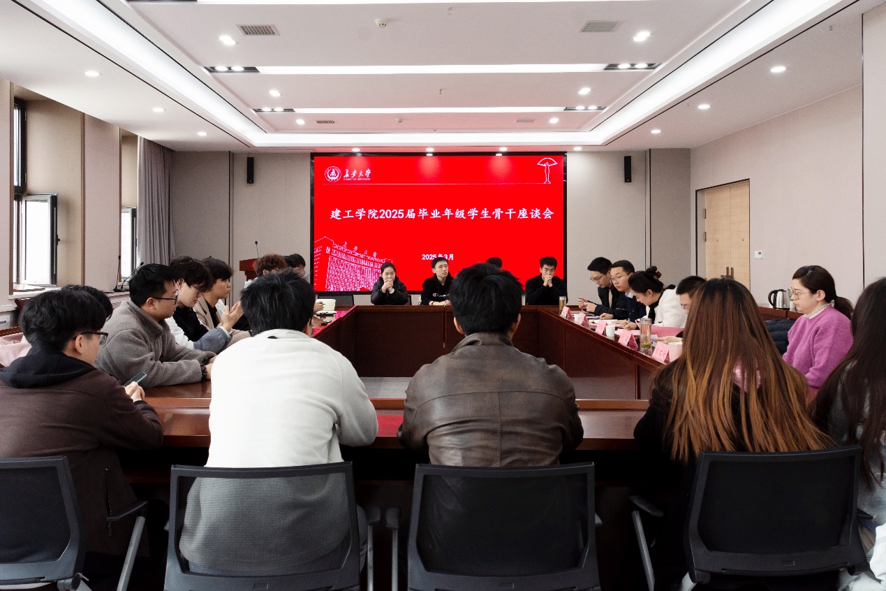 会上,朱文婕通报了2025届毕业生当前就业及升学情况,学生骨干代表围绕班级同学在求职和深造过程中面临的实际困难进行交流发言,与会老师就相关问题进行逐一回复与解答。