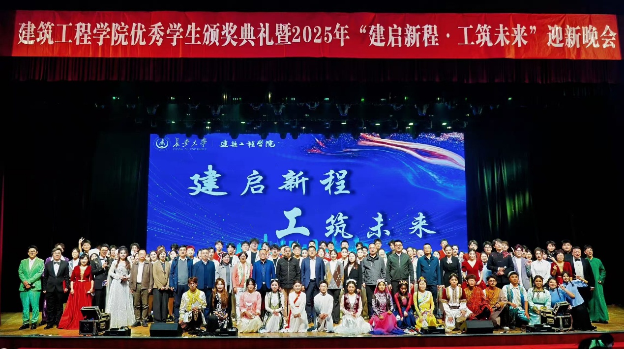 11月21日晚,无码av 优秀学生颁奖典礼暨2025年“建启新程·工筑未来”迎新晚会在北校区长安文化艺术中心大礼堂举办。上海黄金枝教育发展基金会创始人黄金枝、巴州建工(集团)有限责任公司副总经理刘刚等在无码av 设立奖学金的嘉宾,学工部、研工部、校团委、教务处、社会合作处、后勤管理处、保卫处等学校职能部门领导及兄弟无码av 领导,无码av 党政领导、各系室教师代表、全体新生及高年级学生代表1000余人共同参会。颁奖典礼由无码av 党委副书记马熠航主持。